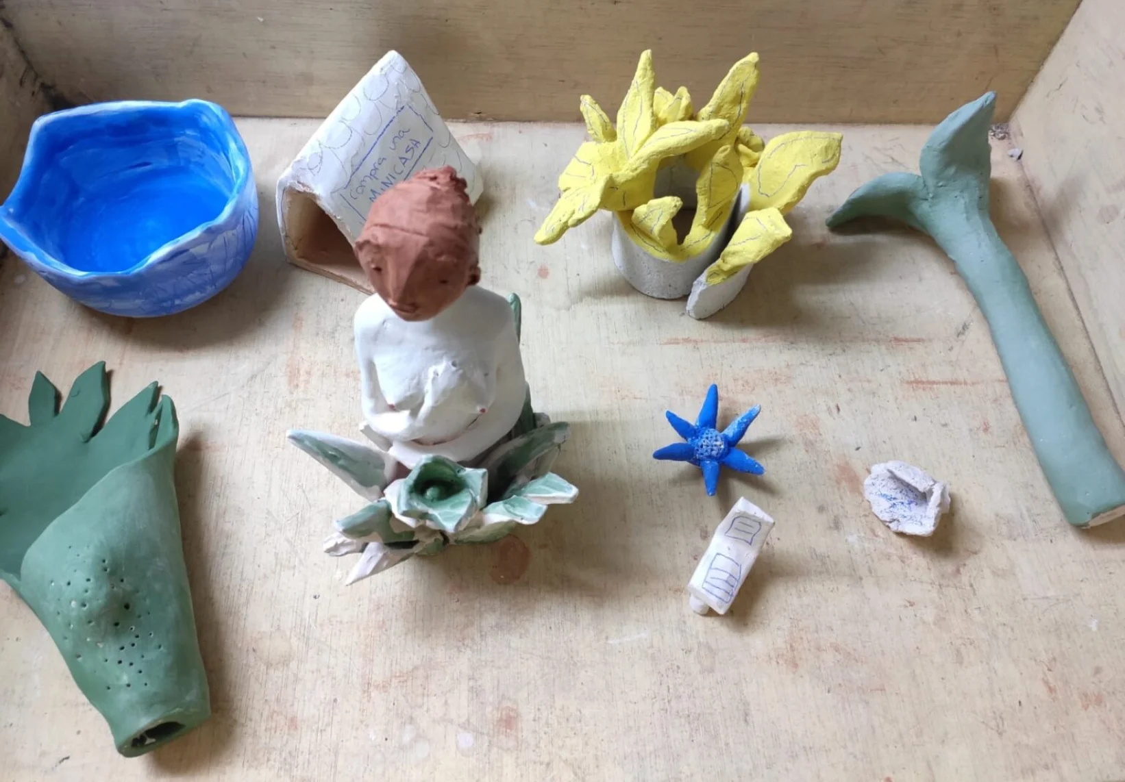 Mis piezas de cerámica nacen de mi búsqueda constante para entender mis obsesiones, es un diálogo que empieza con una letra, se transforma en un dibujo y termina en el acto ancestral de jugar con el barro que se va directo al fuego a transmutarse… Justo lo que yo de forma inconsciente busco en cada pieza.